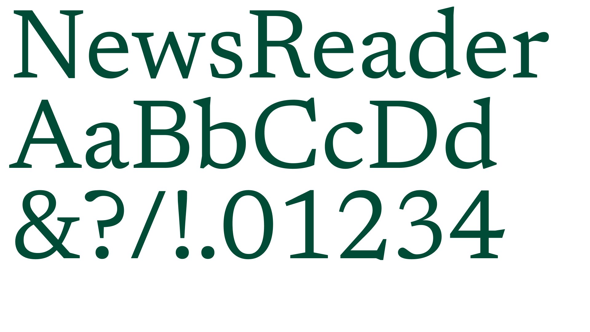 Newsreader is an open-source font from Production Type designed for on-screen, longer-form reading. NewsReader’s shapes are open and familiar, fostering engaged reading, with features like optical sizes and large display cuts that maximize the type’s ability to be expressive. In general, use NewsReader for content such as blog posts and informational page content that is longer than 2-3 paragraphs.